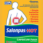 Salonpas® HOT contains Capsaicin, an unscented topical analgesic. It is derived from chili peppers and provides a warming sensation to relieve pain. Salonpas® HOT can be applied for up to 8 hours.