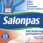 Salonpas® Pain Relieving Gel-Patch HOT contains two powerful pain fighting ingredients. Menthol for a cooling, soothing sensation and Capsaicin for long-lasting, warming relief. The combination provides up to eight hours of targeted relief. The rounded corners prevent peeling and the split film in the center allows for easy application.