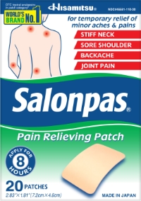 These comfortable, effective topical pain patches have 3 powerful pain fighters that work at the site of pain. Whether for your back, shoulders, neck or legs, the Salonpas® Pain Relieving Patch can provide hours of relief. With rounded corners and flexible fabric, application is easy and the patches bend with your movements. The patches stay where you need them and are easy to remove.